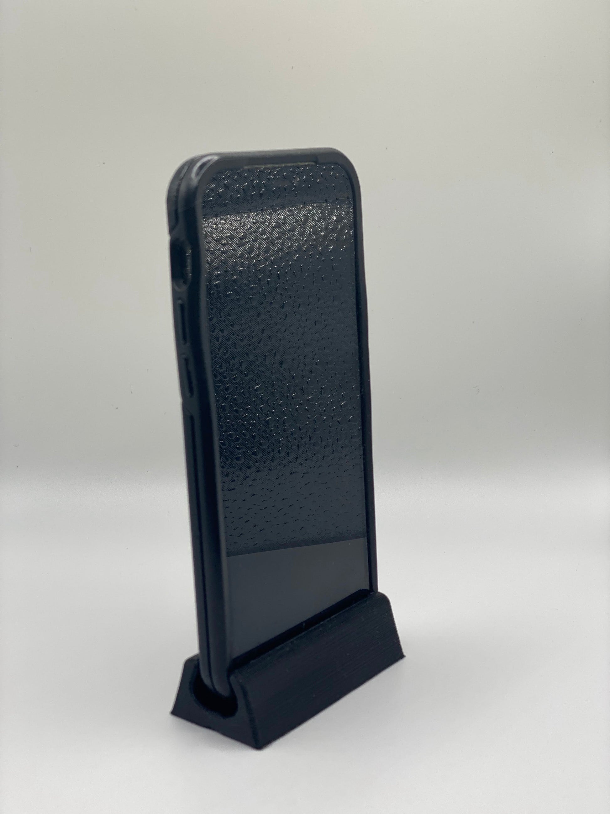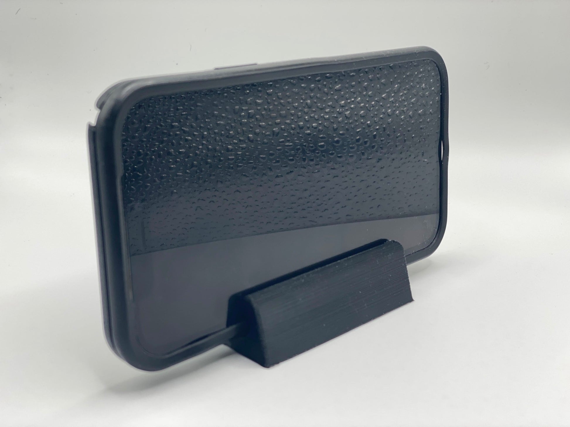 The KDD Minimalist Phone Stand is one solid piece of flexible material. It can be used to prop up a phone in both horizontal and portrait positions. The phone will be grabbed by the mount while allowing to fine tune the orientation.